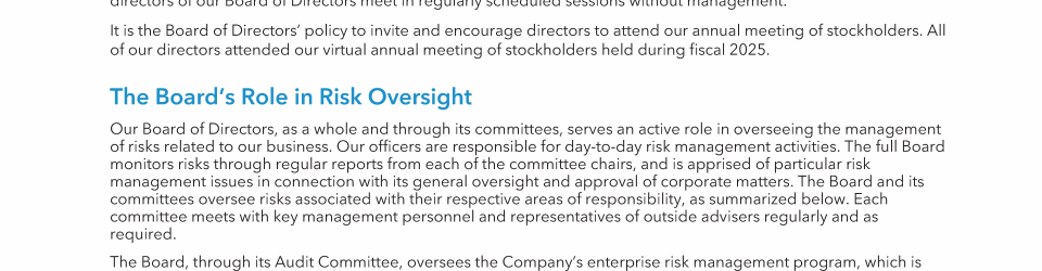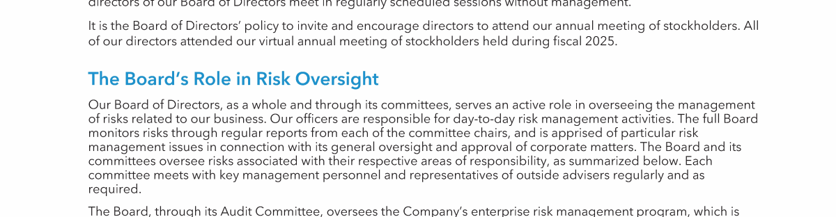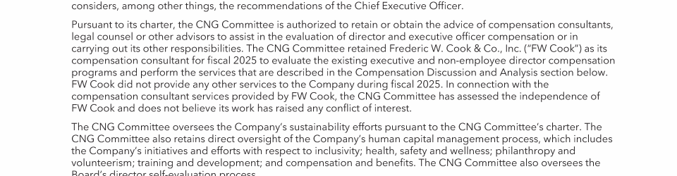 - Summary Compensation Table for Fiscal Years 2025, 2024 and 2023