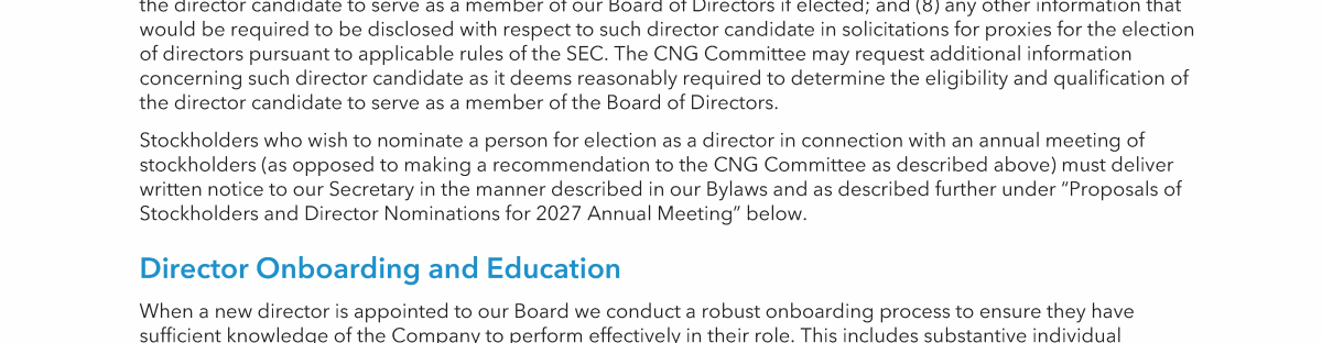 Proposals of Stockholders and Director Nominations for 2027 Annual Meeting