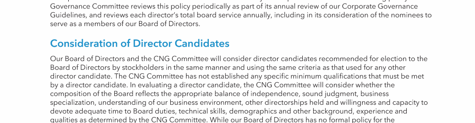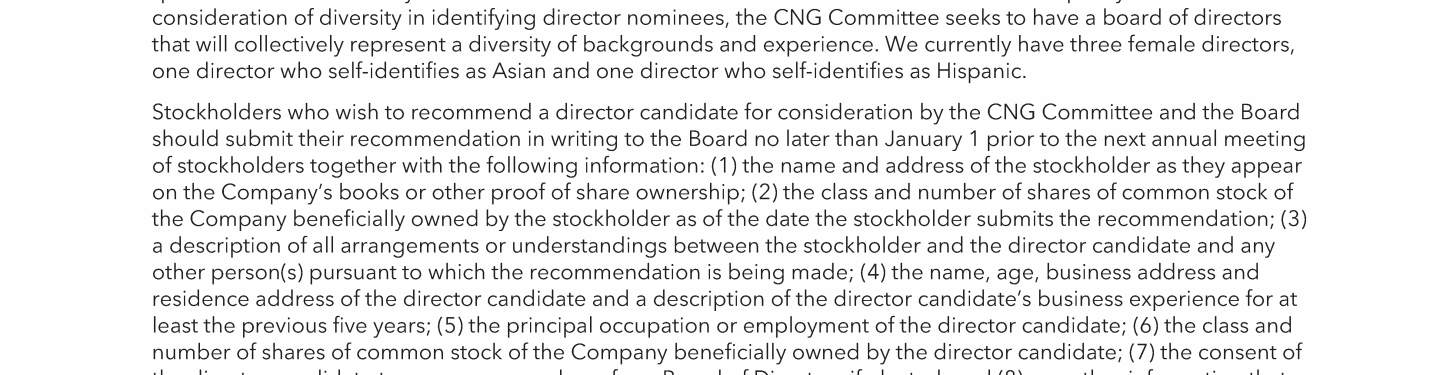 Consideration of Director Candidates