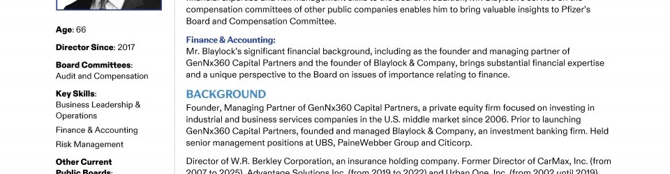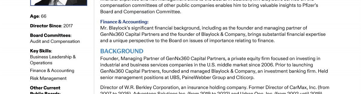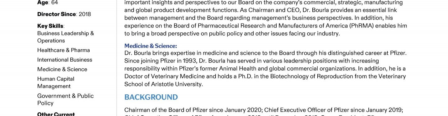 A Message from Pfizer's Lead Independent Director