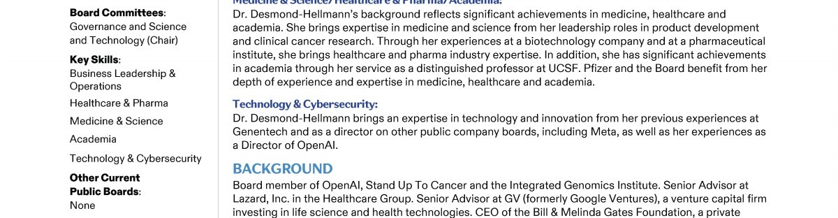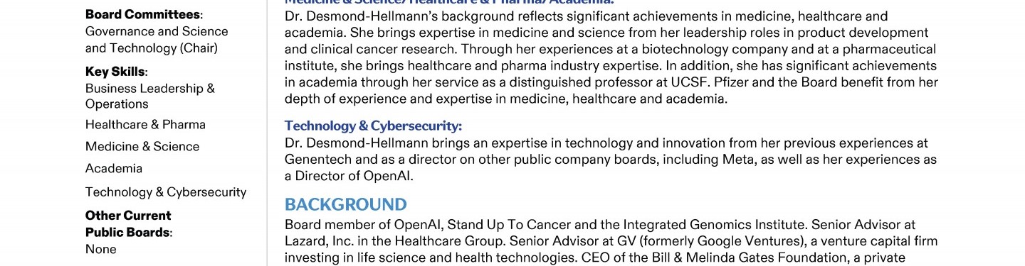 A Message from Pfizer's Lead Independent Director