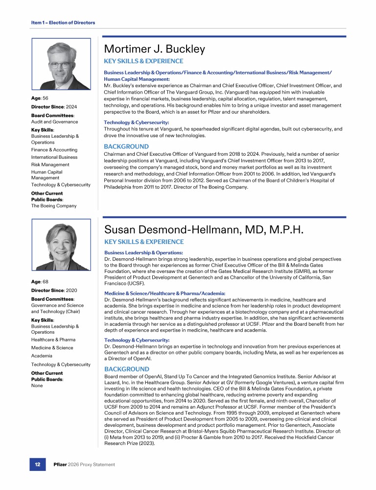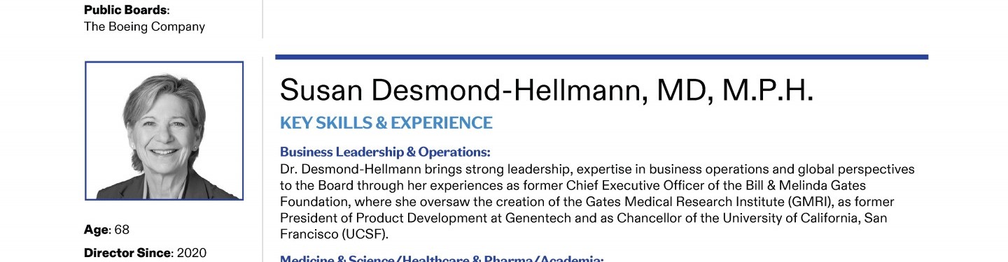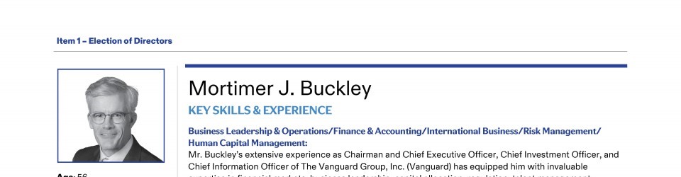 Review our Director nominees' biographies, key skills and experience, committee memberships and more in our interactive