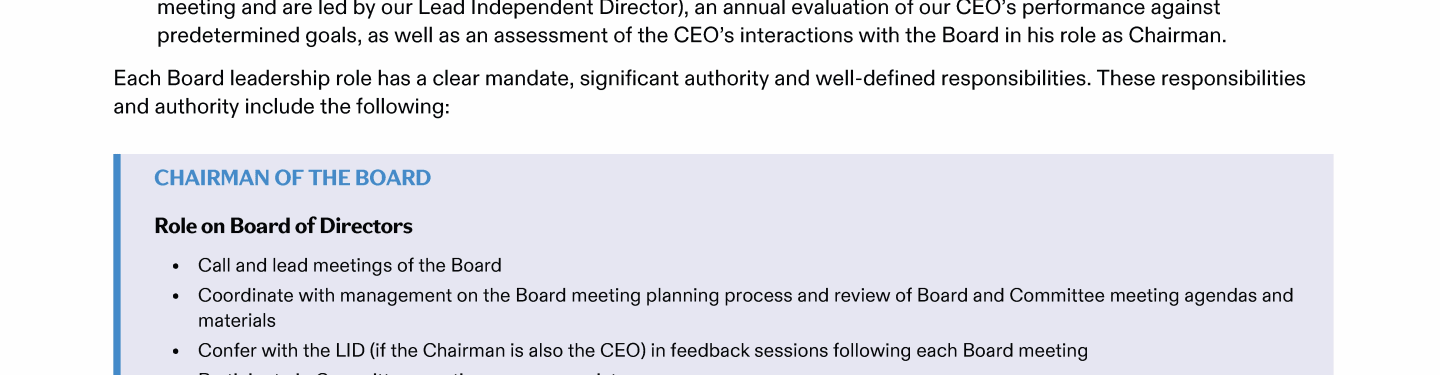 Other Governance Practices and Policies