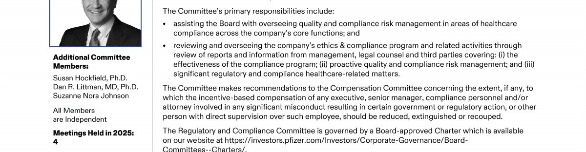 A Message from Pfizer's Lead Independent Director