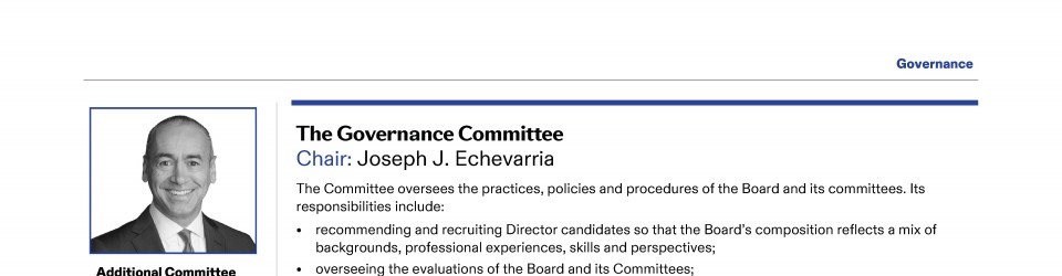 Review our Director nominees' biographies, key skills and experience, committee memberships and more in our interactive