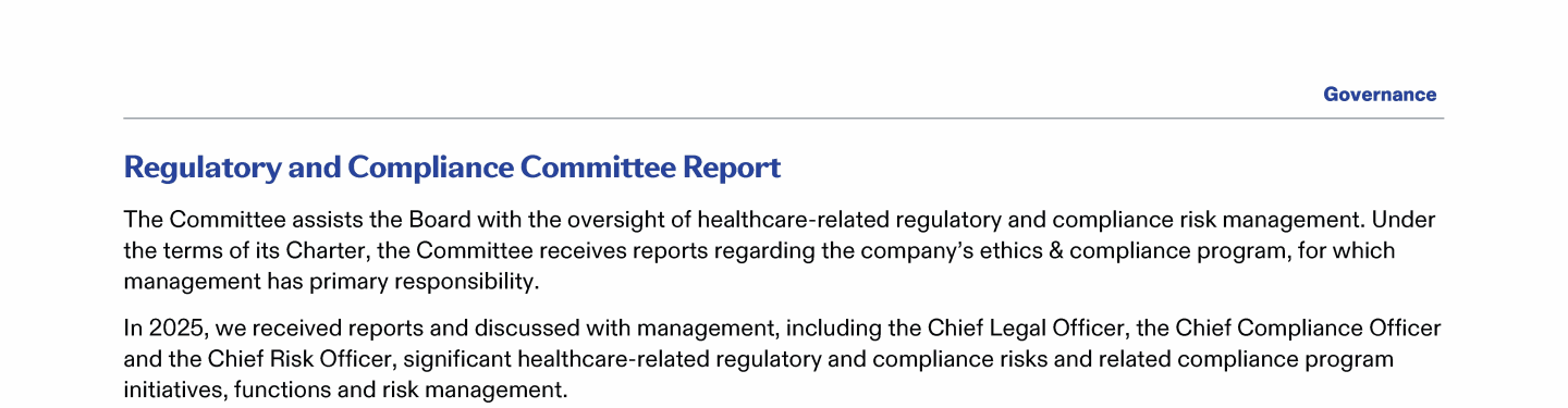 Regulatory and Compliance Committee Report