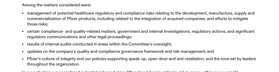 A Message from Pfizer's Lead Independent Director