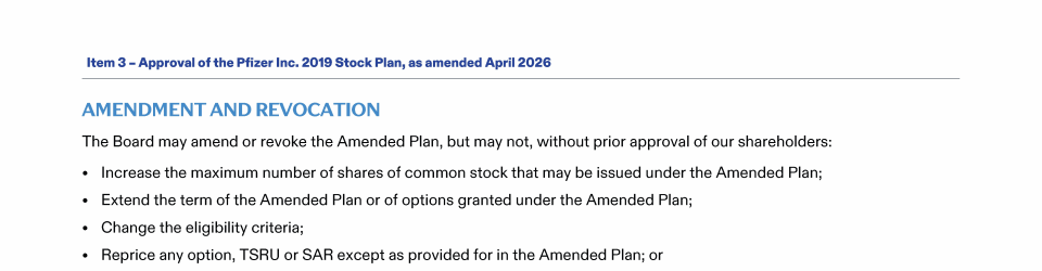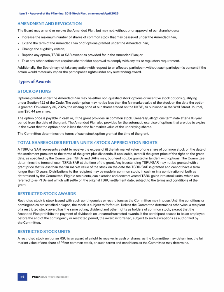 Item 3 - Approval of the Pfizer Inc. 2019 Stock Plan