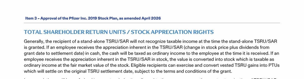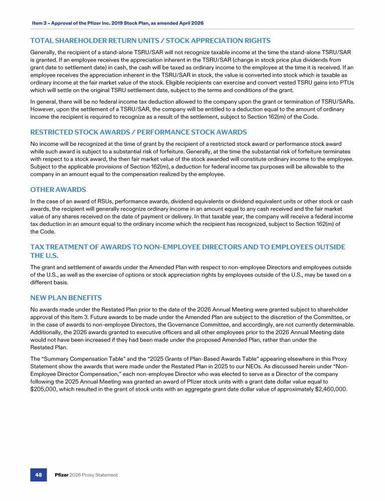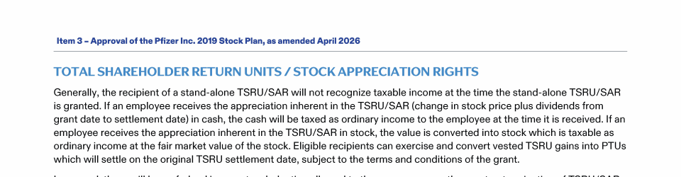 Item 3 - Approval of the Pfizer Inc. 2019 Stock Plan