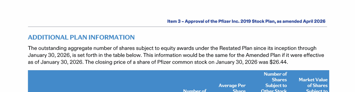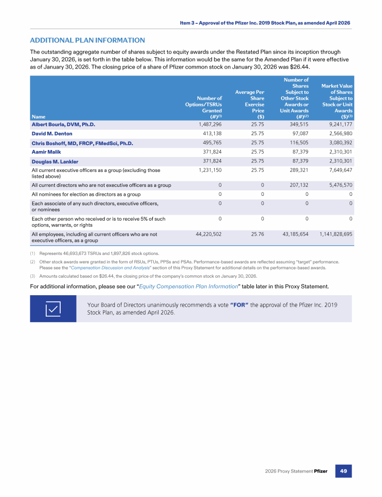 Item 3 - Approval of the Pfizer Inc. 2019 Stock Plan