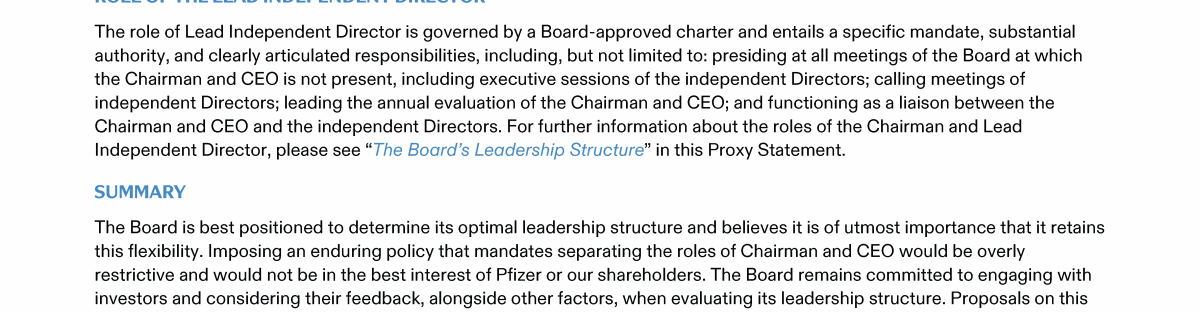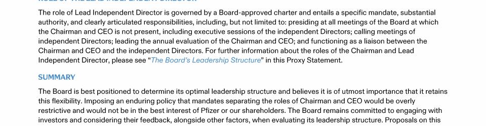 A Message from Pfizer's Lead Independent Director