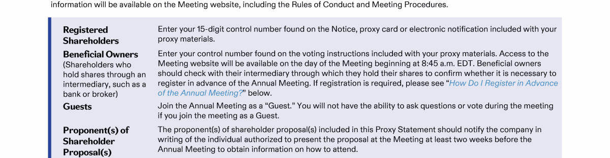 Annual Meeting, Annex 1, Corporate and Shareholder Information