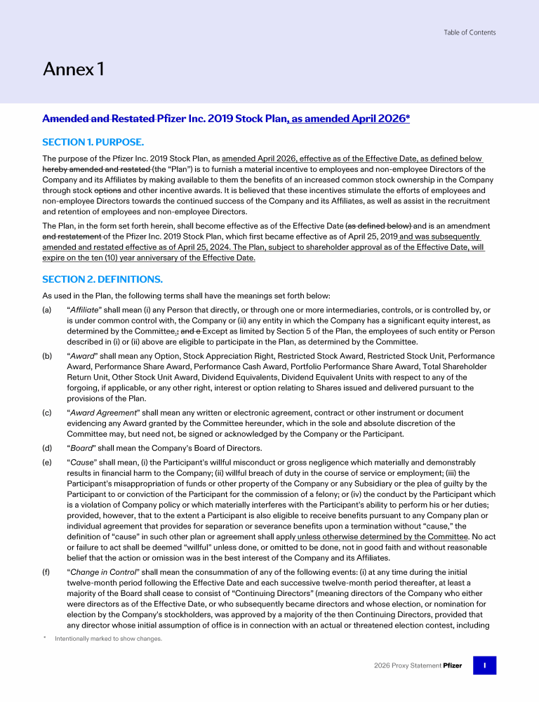 Annex 1 - Pfizer Inc. 2019 Stock Plan