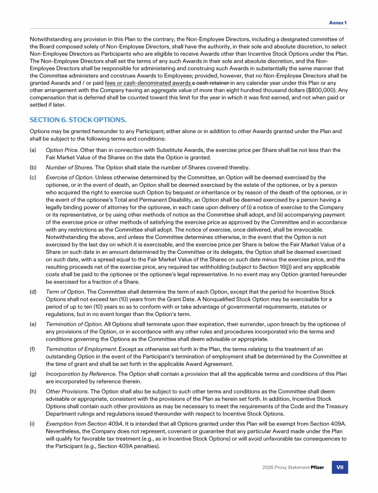 Annex 1 - Pfizer Inc. 2019 Stock Plan