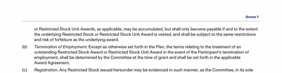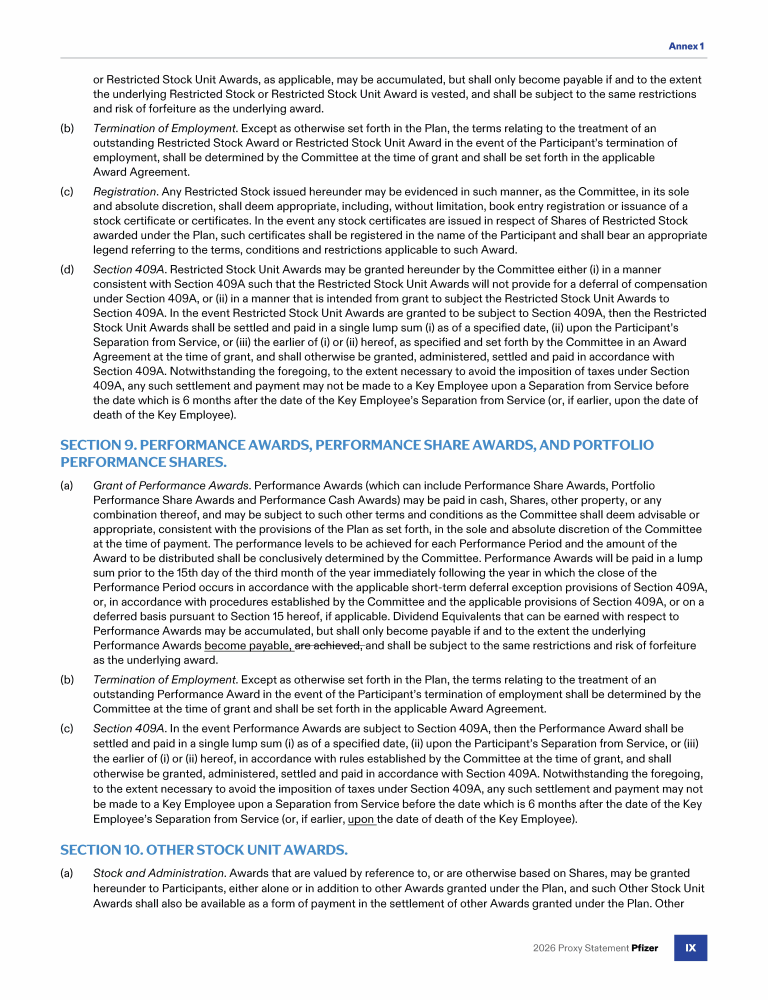 Annex 1 - Pfizer Inc. 2019 Stock Plan