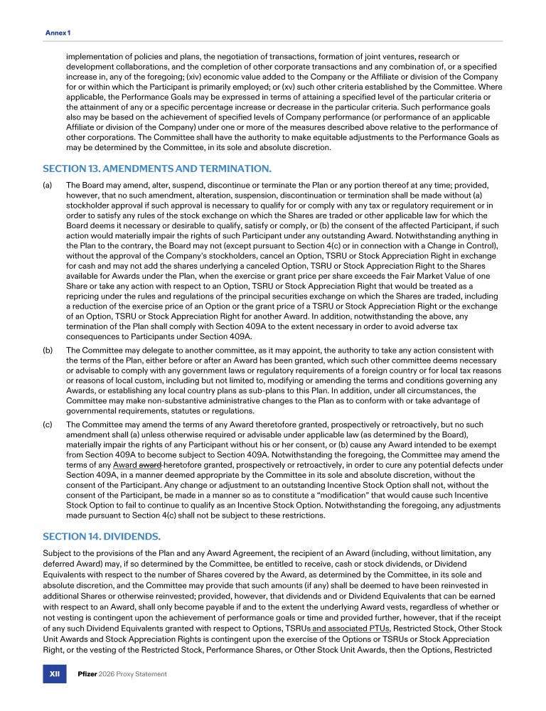 Annex 1 - Pfizer Inc. 2019 Stock Plan