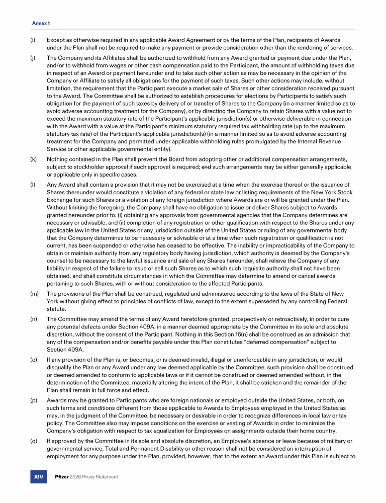 Annex 1 - Pfizer Inc. 2019 Stock Plan