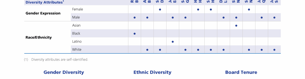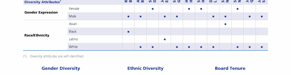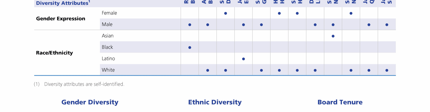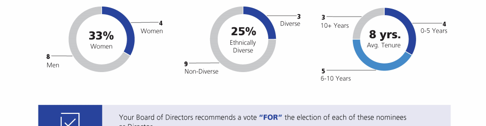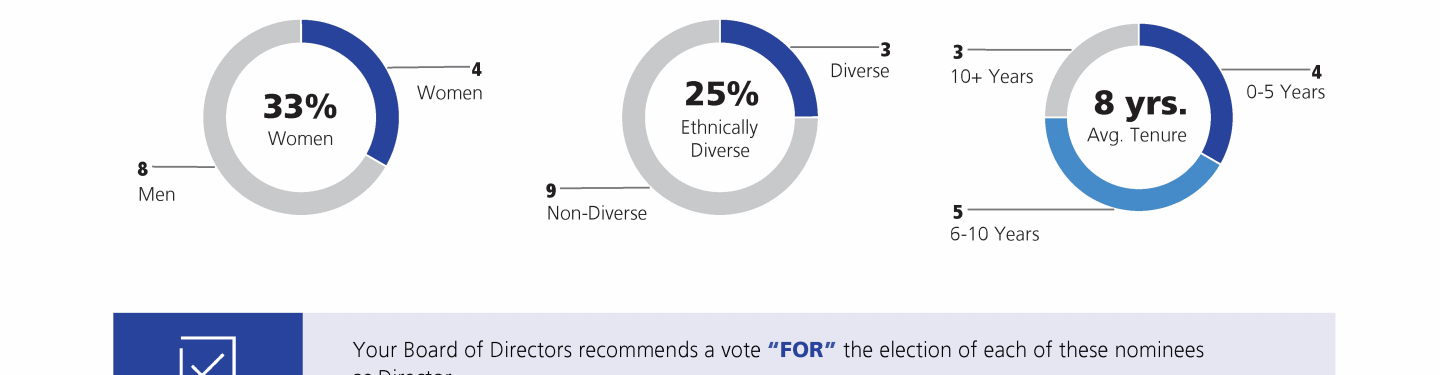 Review our Director nominees' biographies, key skills and experience, committee memberships and more in our interactive