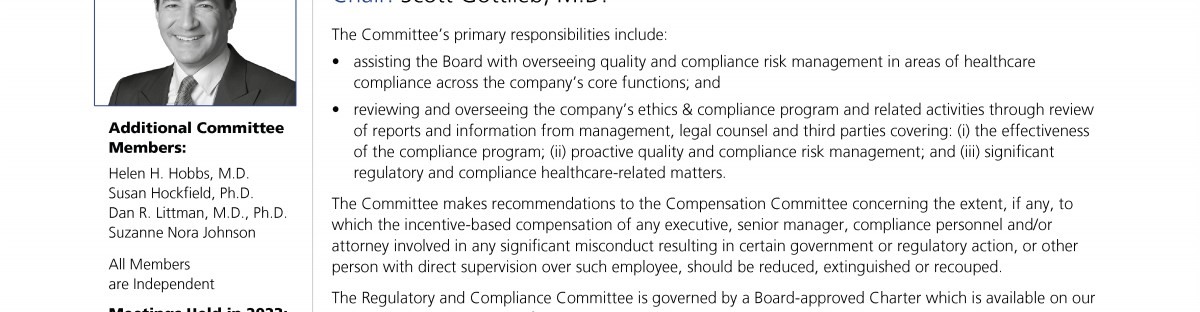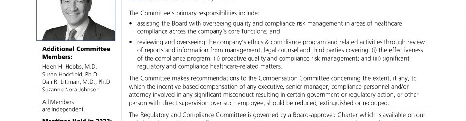 Regulatory and Compliance Committee Report