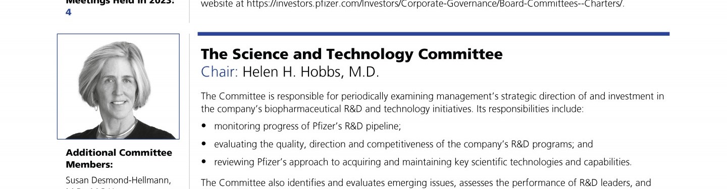 A Message from Pfizer's Lead Independent Director