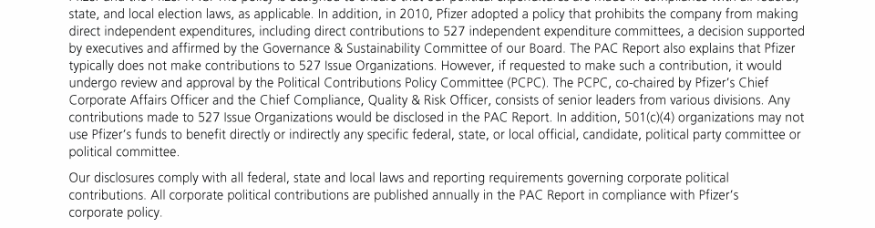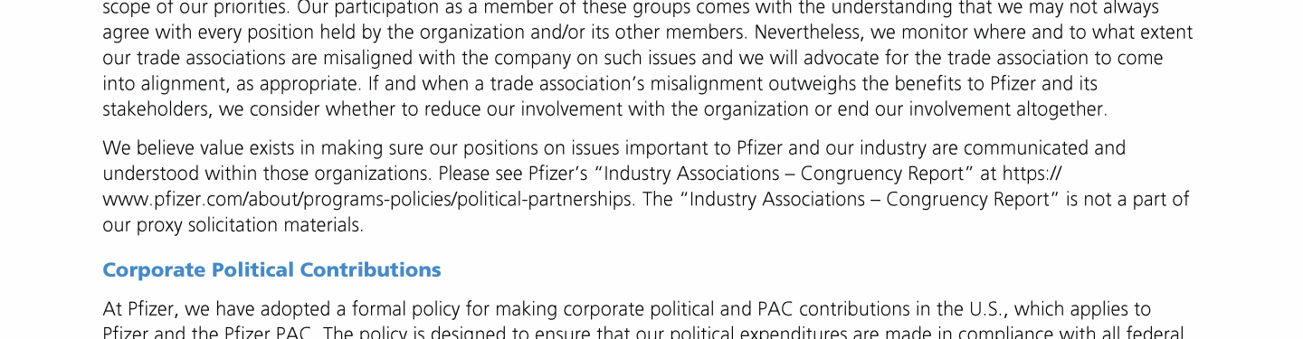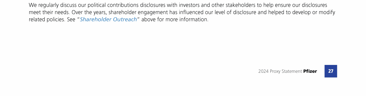 Click here to go to www.pfizer.com/about/programs-policies/political-partnerships Click here to go to www.pfizer.com/about/programs-policies/political-partnerships Click here to go to www.pfizer.com/about/programs-policies/political-partnerships Click here to go to www.pfizer.com/about/programs-policies/political-partnerships Click here to go to www.pfizer.com/about/programs-policies/political-partnerships Click here to go to www.pfizer.com/about/programs-policies/political-partnerships Click to view Shareholder Outreach Click to view Shareholder Outreach Click to view Shareholder Outreach Click here to go to www.pfizer.com/about/programs-policies/political-partnerships Click here to go to www.pfizer.com/about/programs-policies/political-partnerships Click to view Shareholder Outreach Click here to go to www.pfizer.com/about/programs-policies/political-partnerships Click here to go to www.pfizer.com/about/programs-policies/political-partnerships Click to view Shareholder Outreach