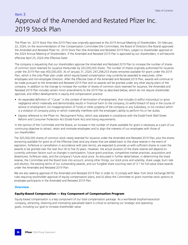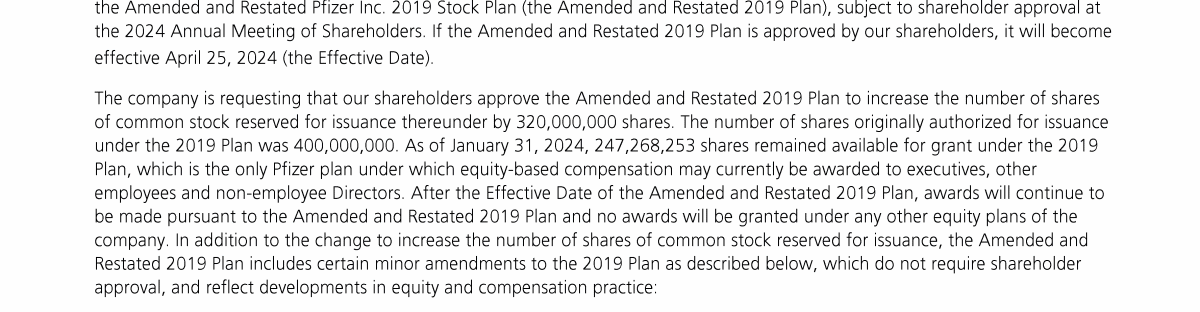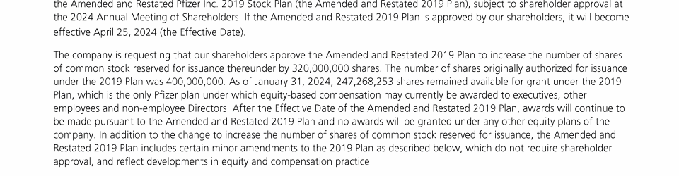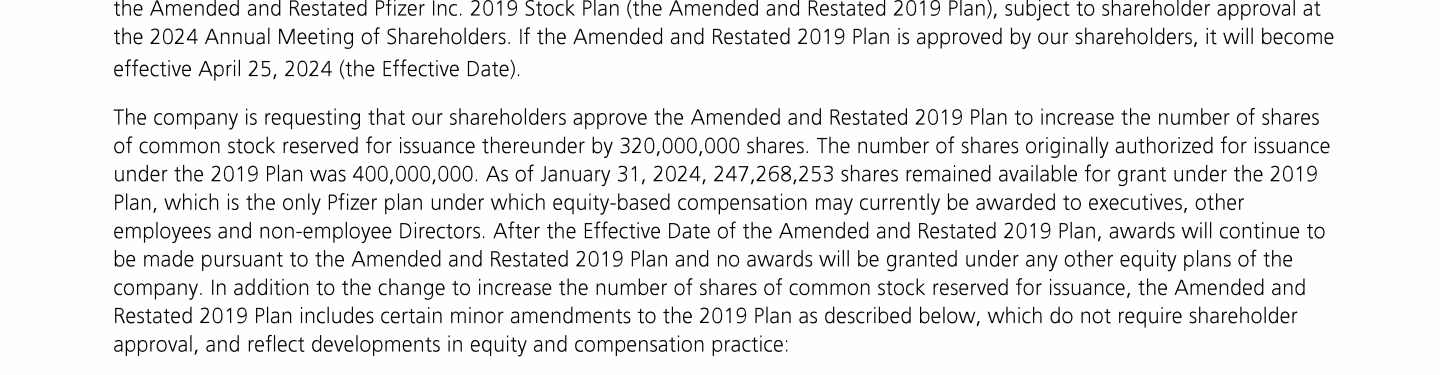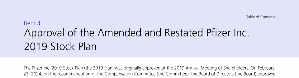 Item 3 - Approval of the Amended and Restated Pfizer Inc. 2019 Stock Plan