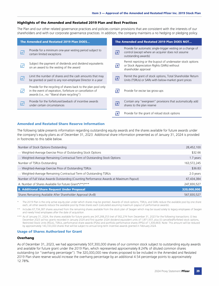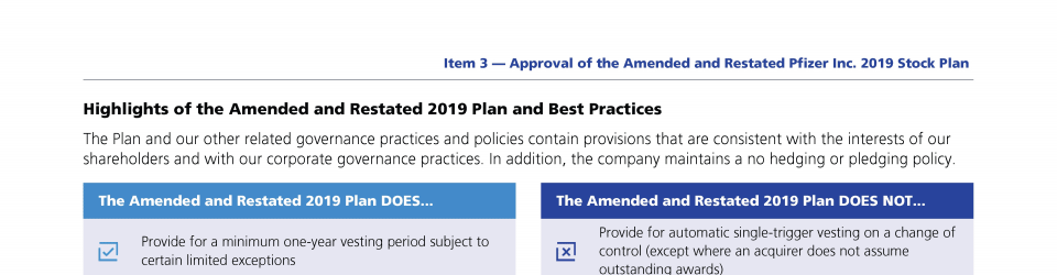 Item 3 - Approval of the Amended and Restated Pfizer Inc. 2019 Stock Plan