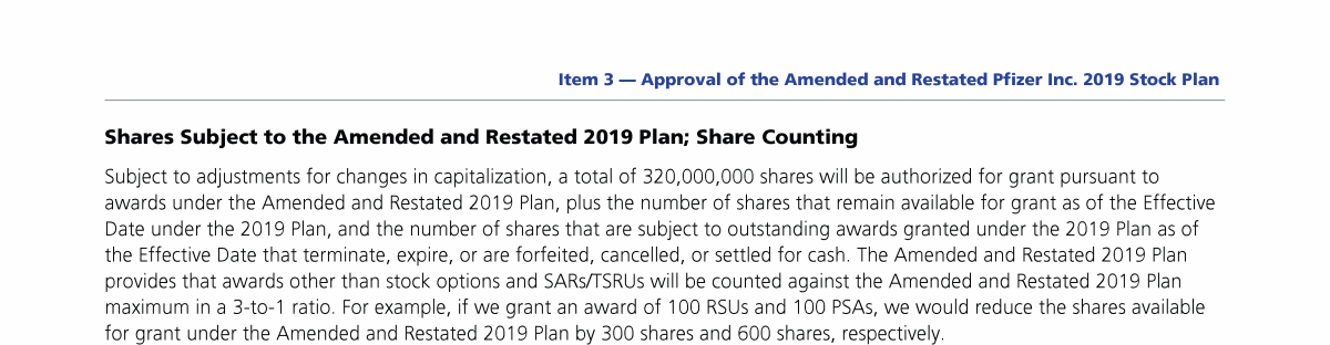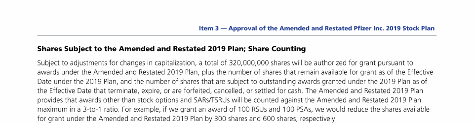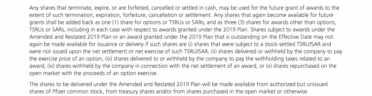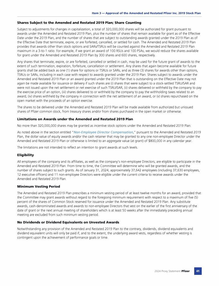 Item 3 - Approval of the Amended and Restated Pfizer Inc. 2019 Stock Plan
