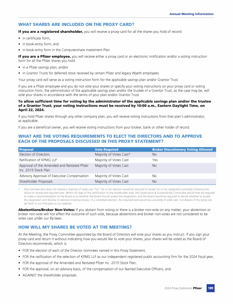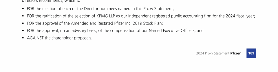 Item 3 - Approval of the Amended and Restated Pfizer Inc. 2019 Stock Plan