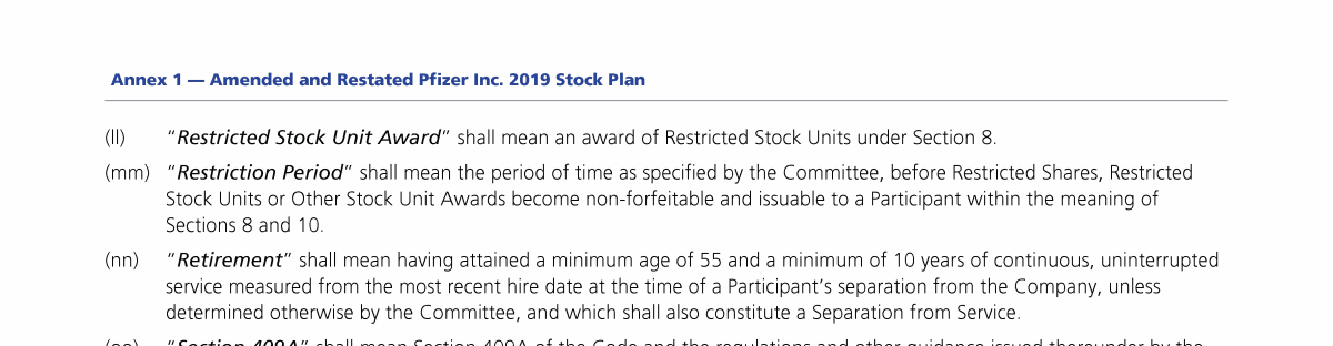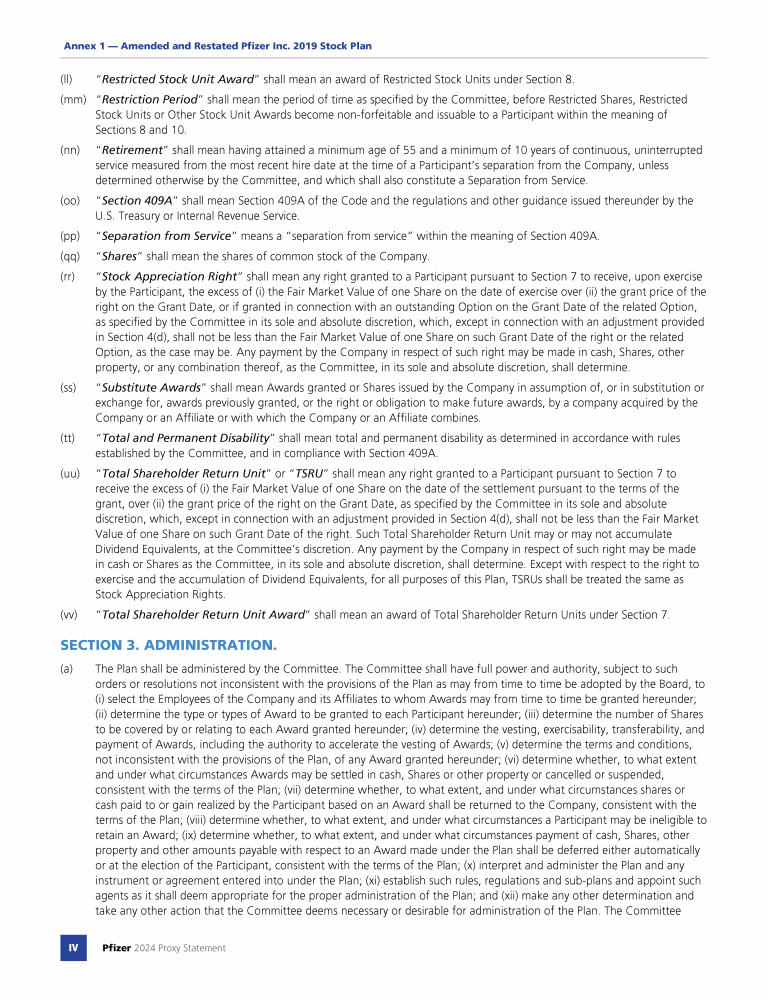 Annex 1 - Amended and Restated Pfizer Inc. 2019 Stock Plan
