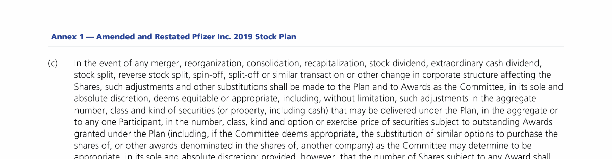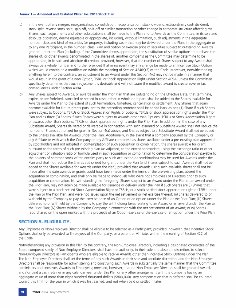 Annex 1 - Amended and Restated Pfizer Inc. 2019 Stock Plan