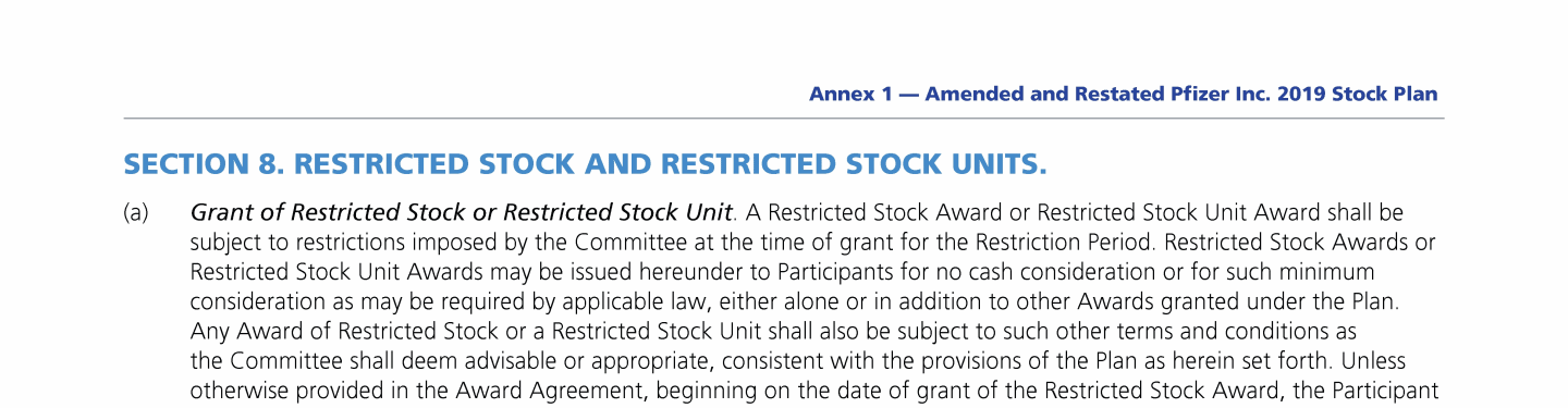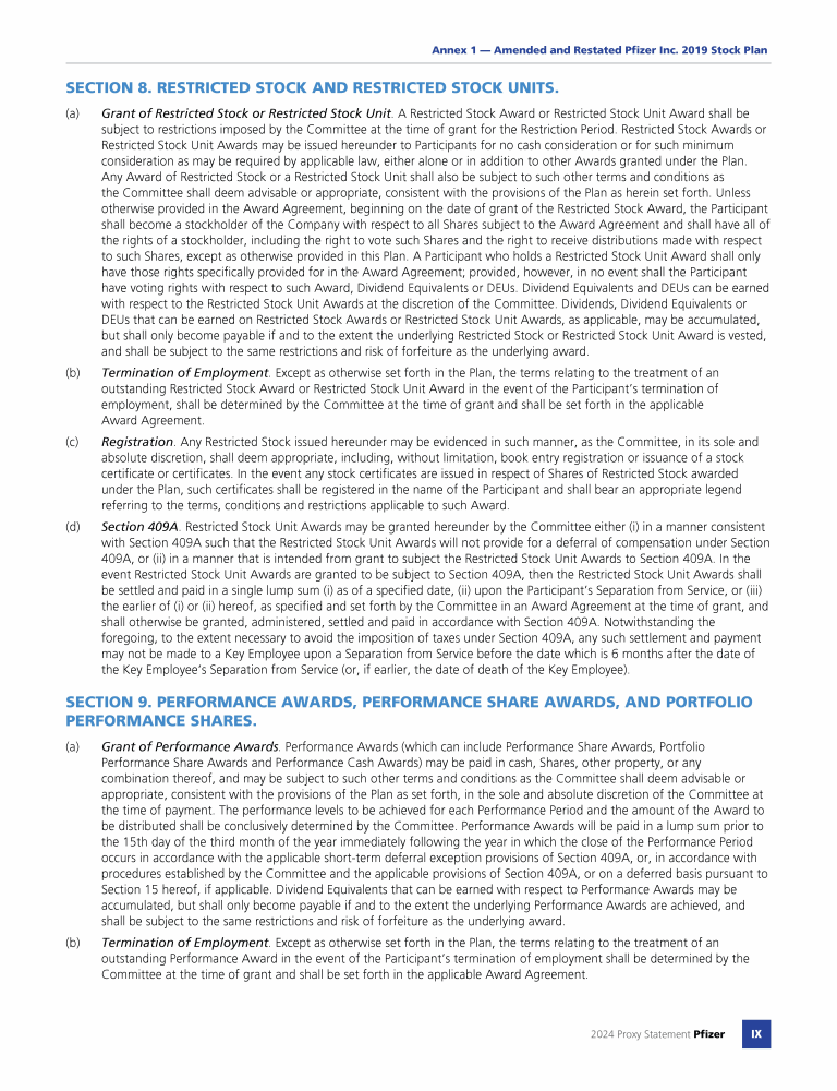 Annex 1 - Amended and Restated Pfizer Inc. 2019 Stock Plan