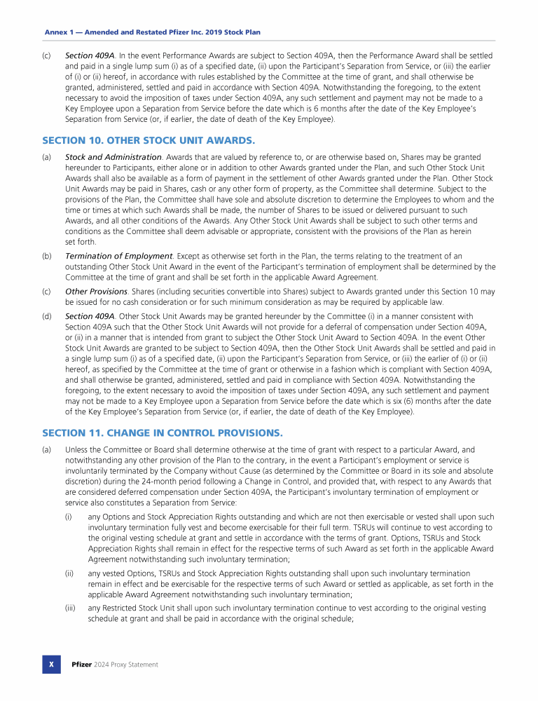 Annex 1 - Amended and Restated Pfizer Inc. 2019 Stock Plan