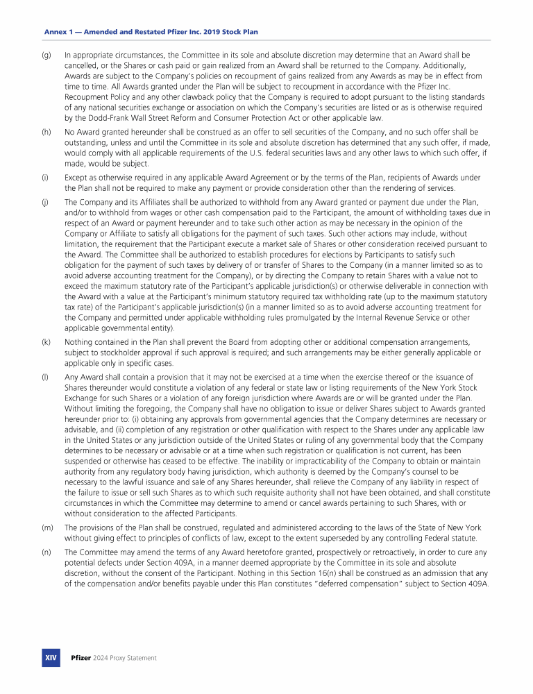 Annex 1 - Amended and Restated Pfizer Inc. 2019 Stock Plan