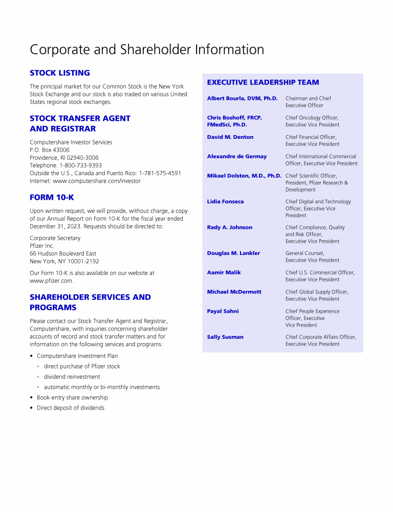 A Message from Pfizer's Lead Independent Director