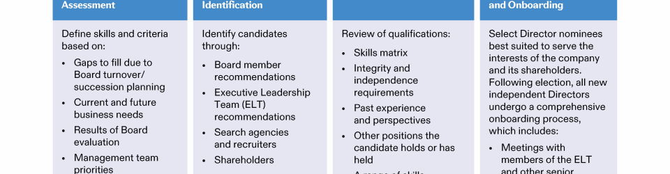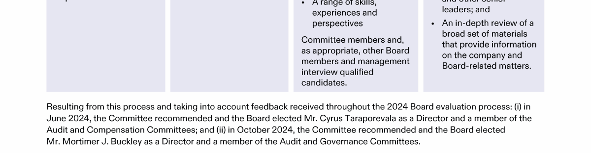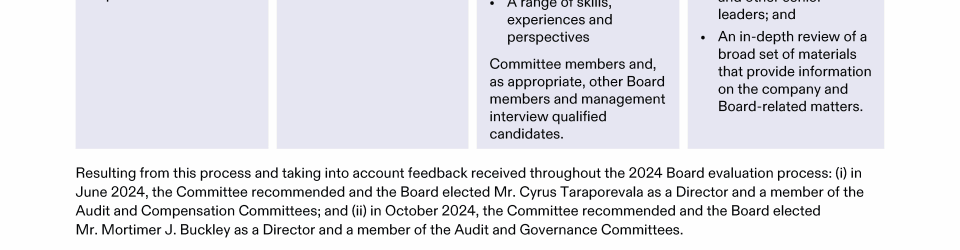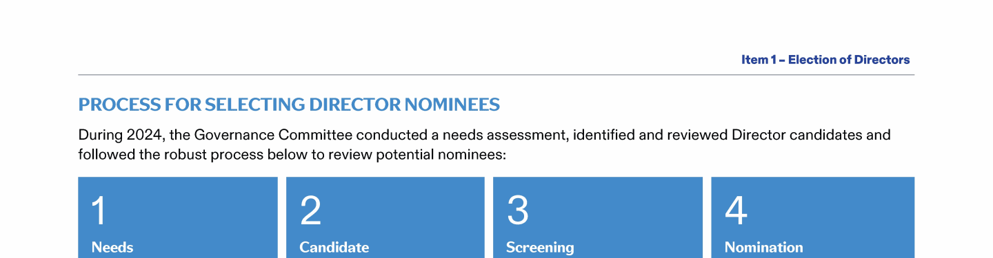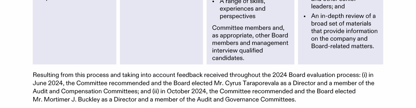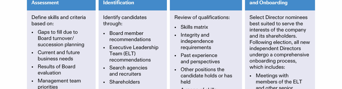 Review our Director nominees' biographies, key skills and experience, committee memberships and more in our interactive