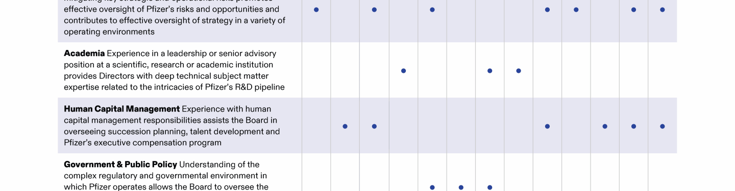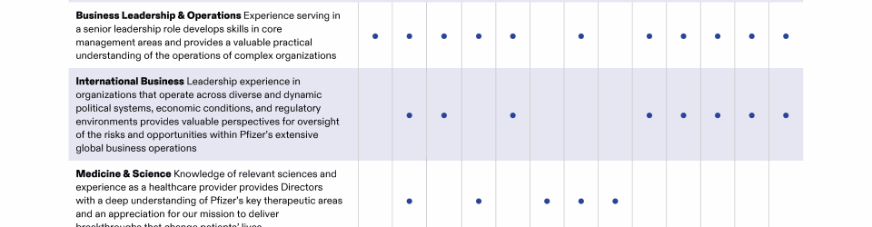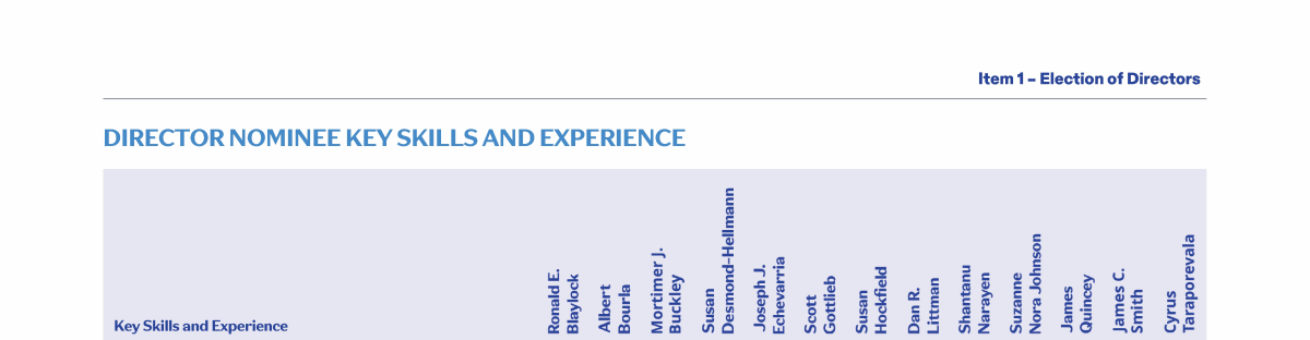 Review our Director nominees' biographies, key skills and experience, committee memberships and more in our interactive