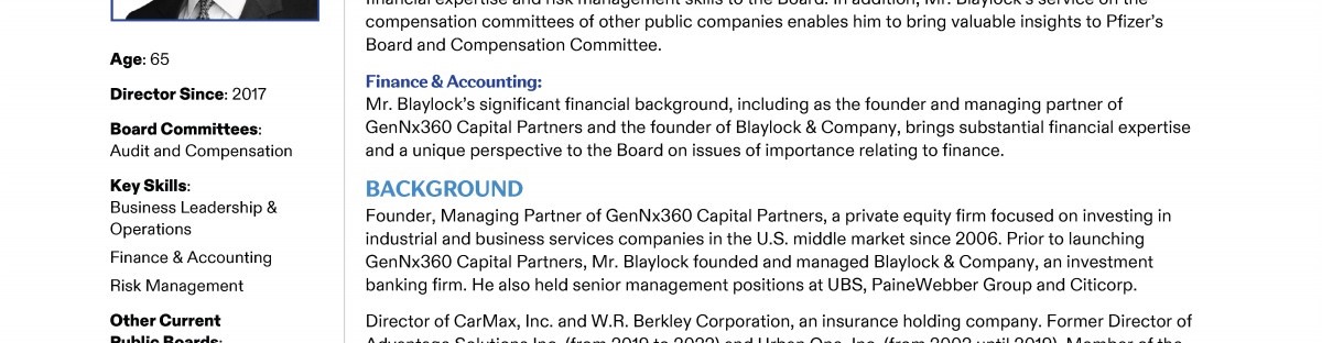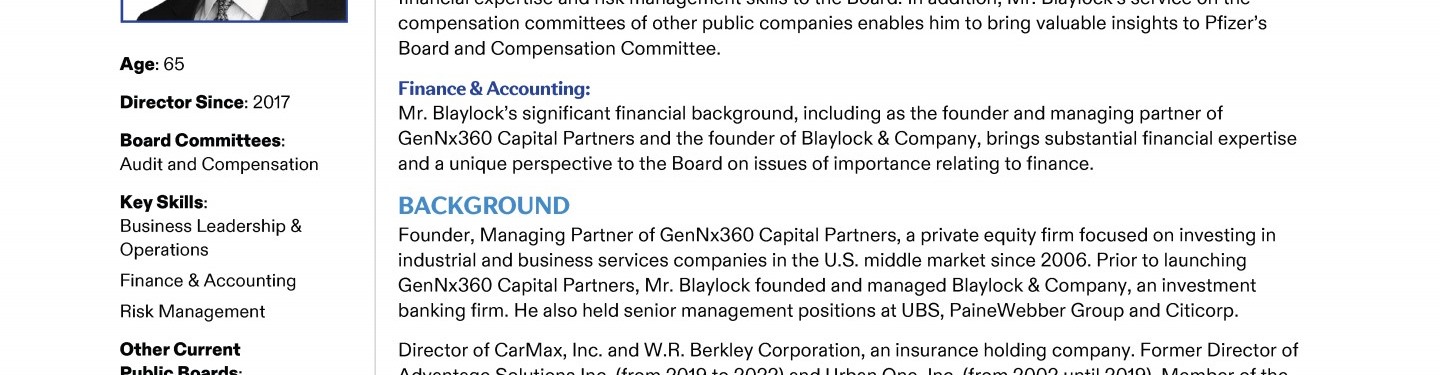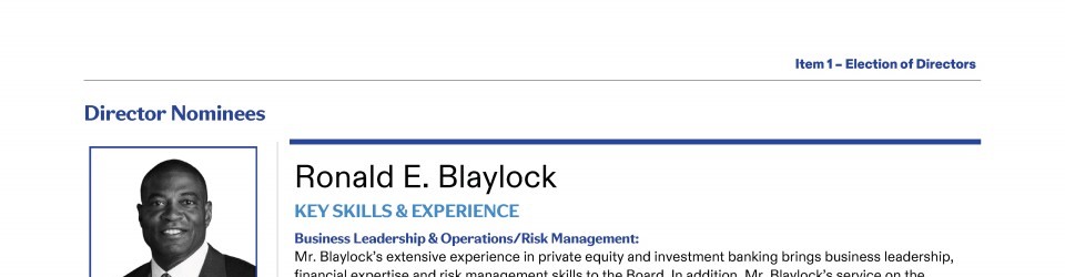 Review our Director nominees' biographies, key skills and experience, committee memberships and more in our interactive
