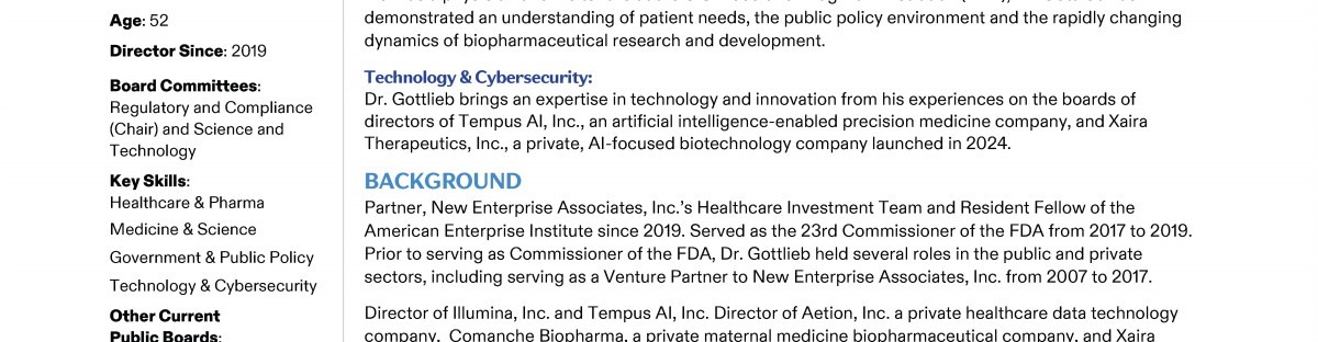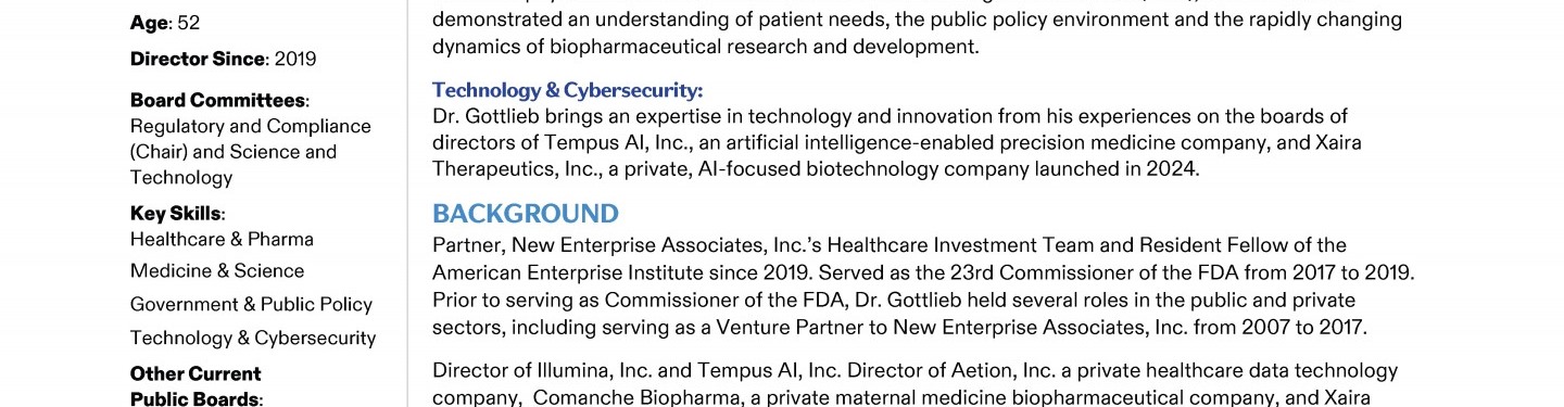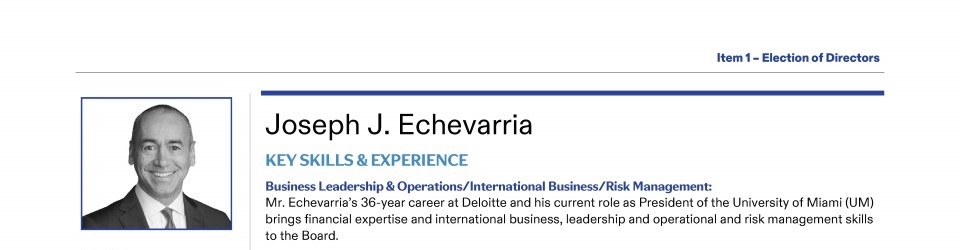 Review our Director nominees' biographies, key skills and experience, committee memberships and more in our interactive