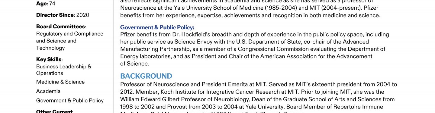 A Message from Pfizer's Lead Independent Director