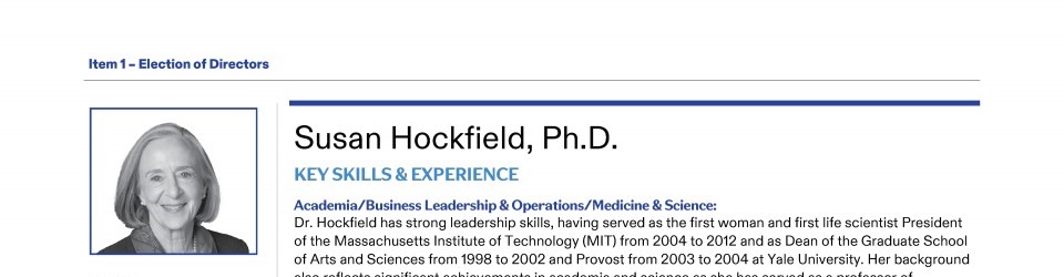 Review our Director nominees' biographies, key skills and experience, committee memberships and more in our interactive
