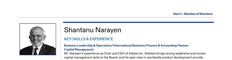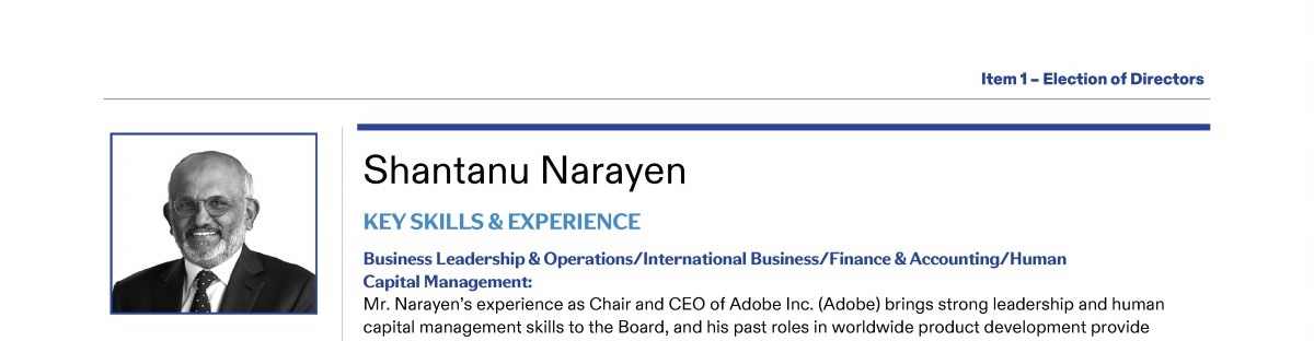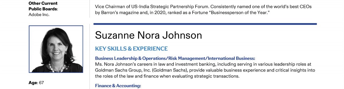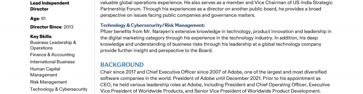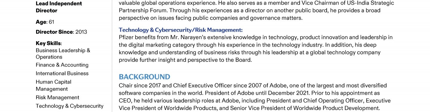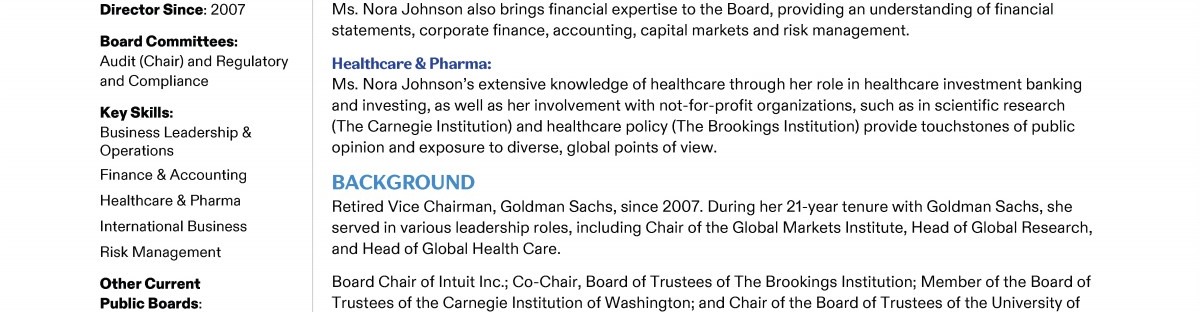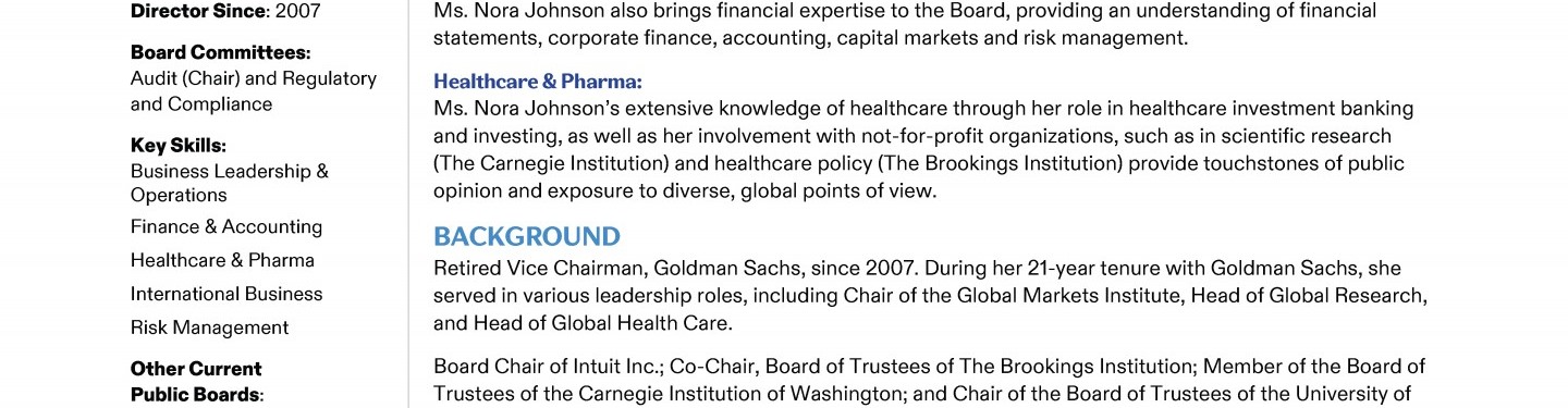 Review our Director nominees' biographies, key skills and experience, committee memberships and more in our interactive
