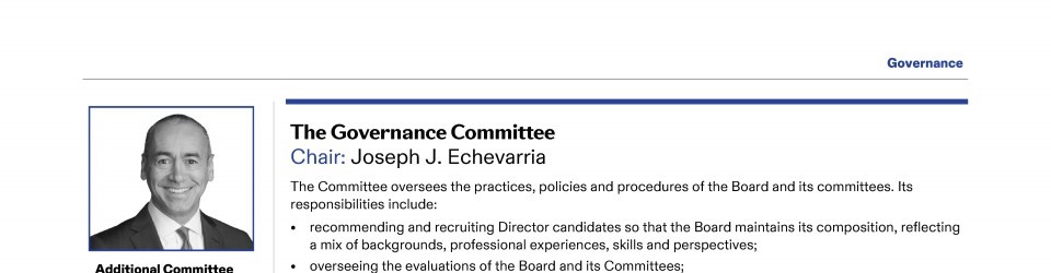 Review our Director nominees' biographies, key skills and experience, committee memberships and more in our interactive