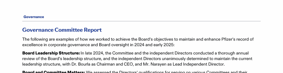 A Message from Pfizer's Lead Independent Director