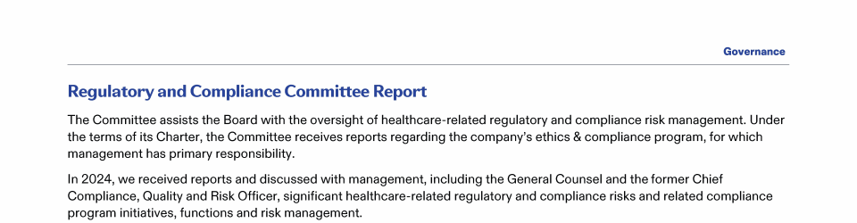 Regulatory and Compliance Committee Report