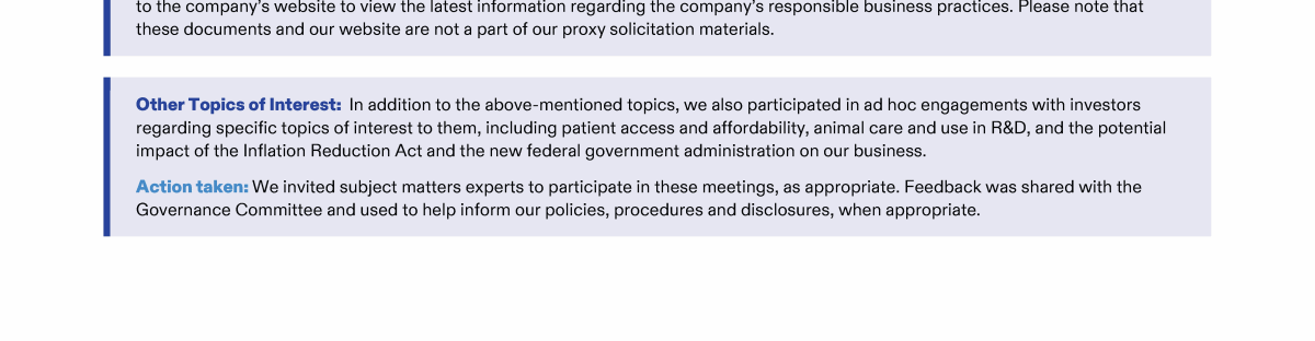 Other Governance Practices and Policies