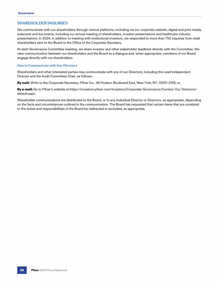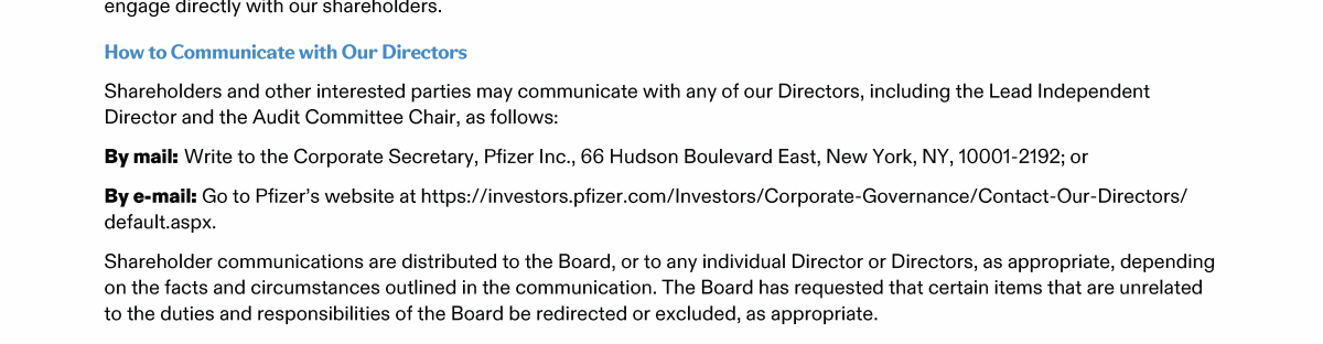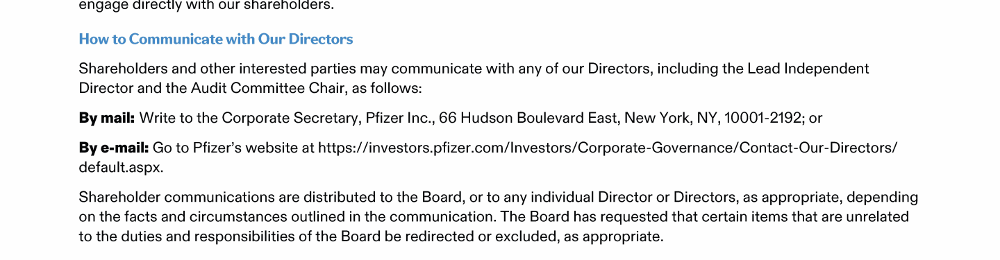 A Message from Pfizer's Lead Independent Director