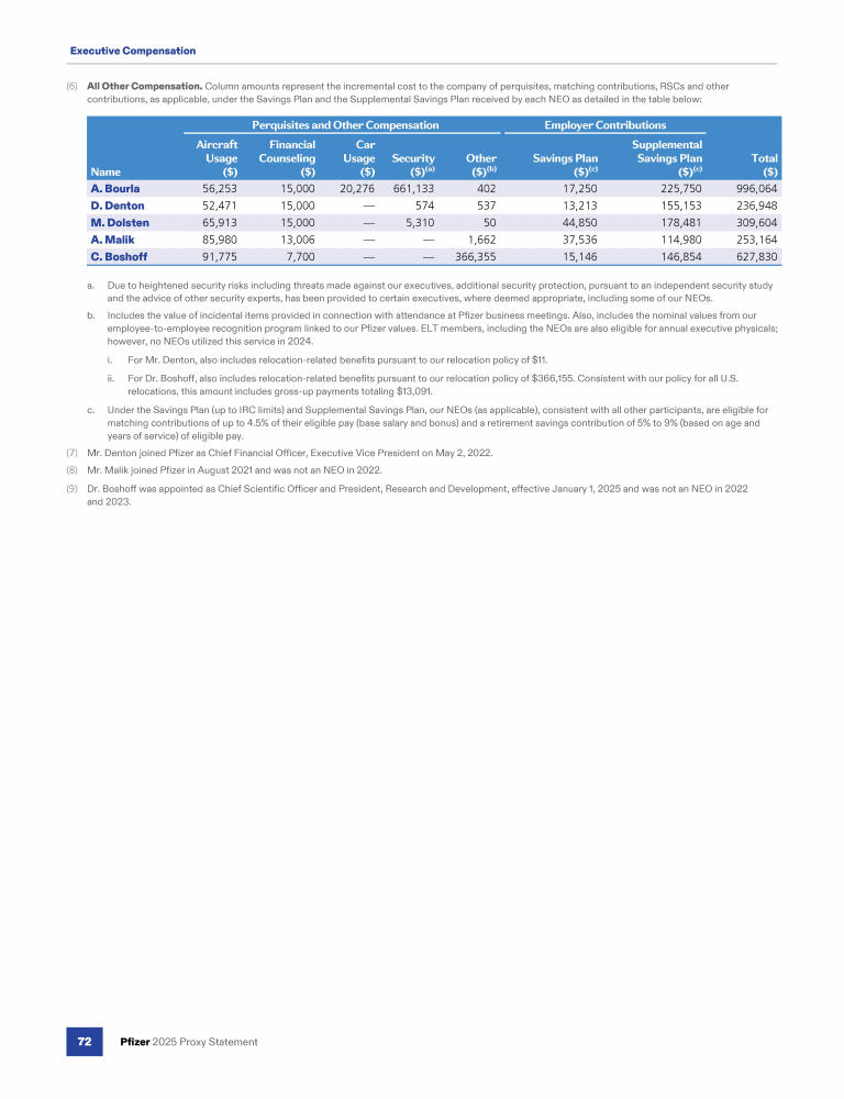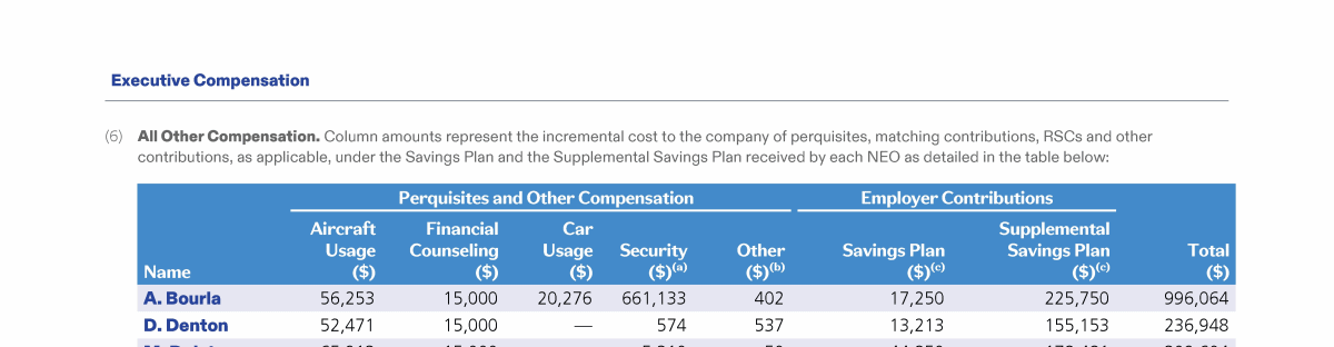Compensation Tables